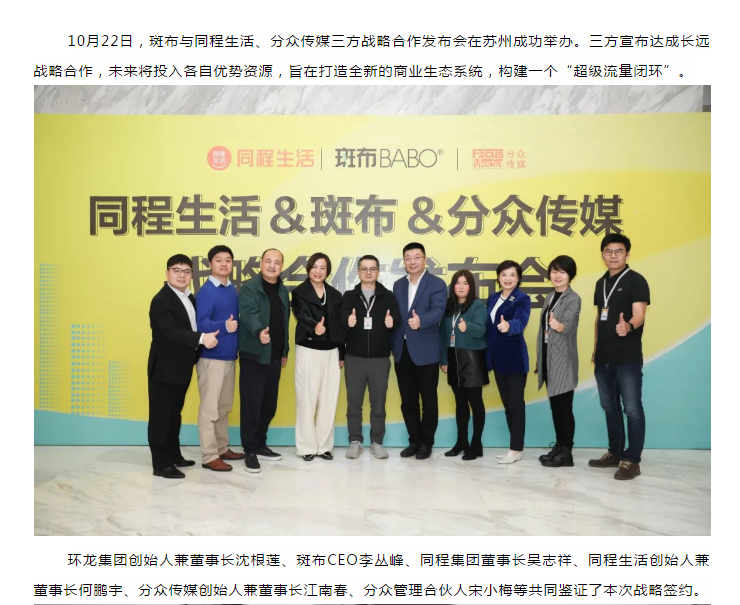 斑布與同程生活、分眾傳媒達成戰略合作,構建超級流量閉環