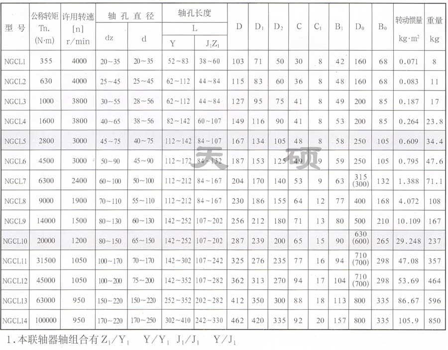 鼓形齒式聯(lián)軸器-NGCL型帶制動輪鼓形齒式聯(lián)軸器基本參數(shù)和主要尺寸-天碩聯(lián)軸器(上海)有限公司