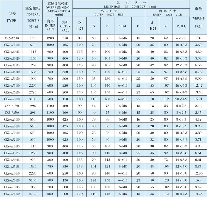 CKZ-F系列為帶軸承非接觸楔塊式單向離合器