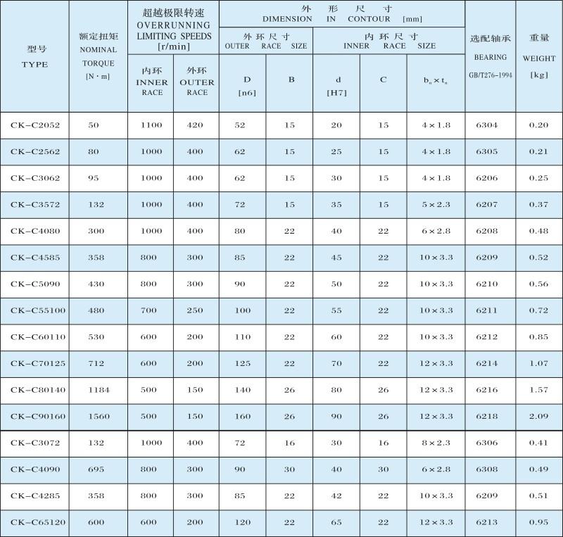 CK-C楔塊式單向離合器詳細內容介紹