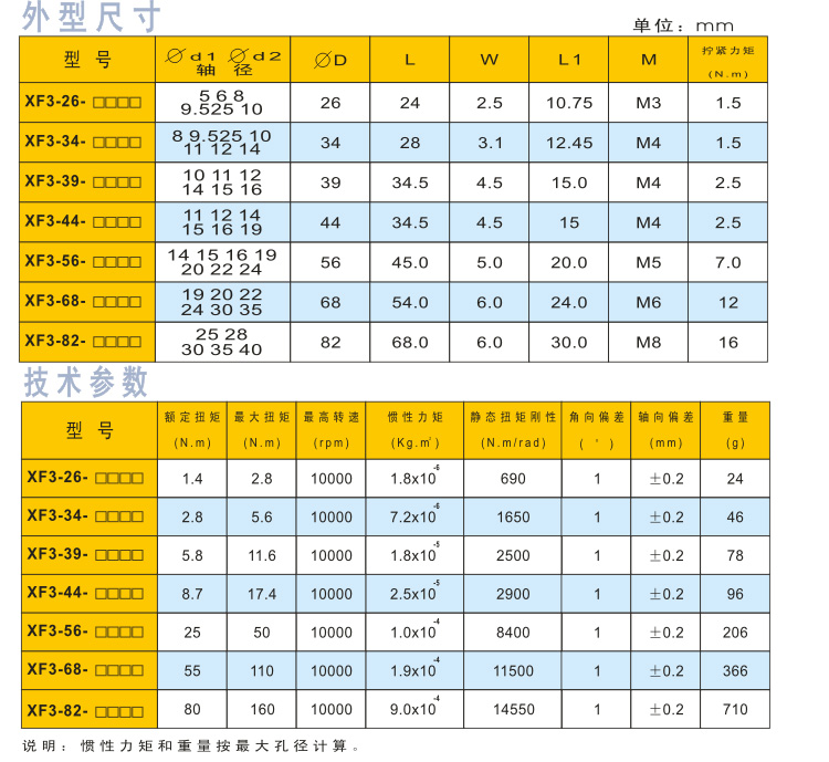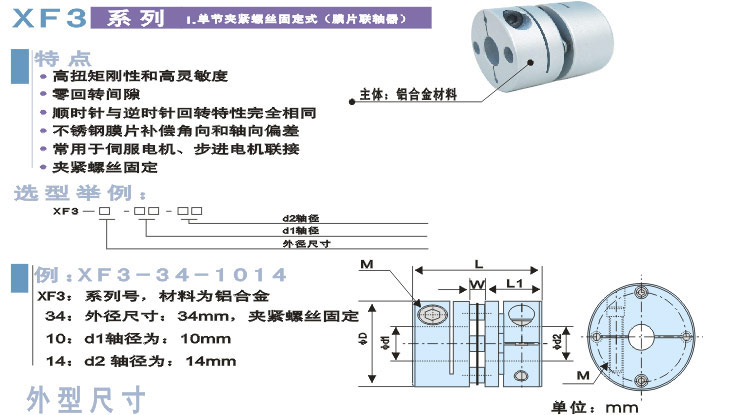 單節夾緊螺絲固定式聯軸器特 點: