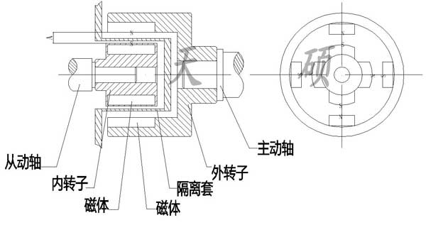 同軸型傳動(dòng)器,是目前應(yīng)用廣的同步傳動(dòng)器。典型的應(yīng)用,_是磁力泵。